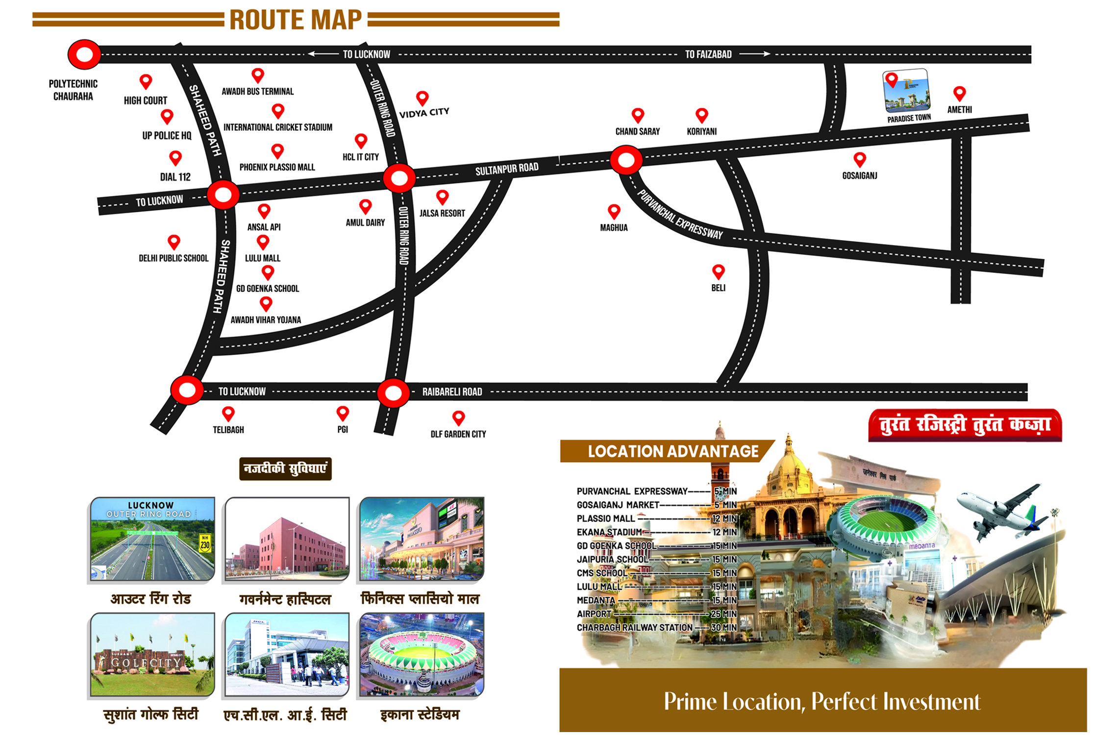 PARADISE TOWN At Behind Nayara Petrol Pupm, Gosaiganj, Sultanpur road - Lucknow is a premium real estate developmant project in Lucknow, which has launched an ambitious residential project. This project has been designed in such a way the each resident is guaranteed a life time of privacy and an unhurried pace of life with a completely safe, green and pollution free environment. Indeed the property market in India real estate to have not glimmered to the metro cities but to the capital of U.P has elevated to the country. Embraced of lush of greenery all around, signifies to experience the simple joy of life. PARADISE TOWN is what modern living is all about.